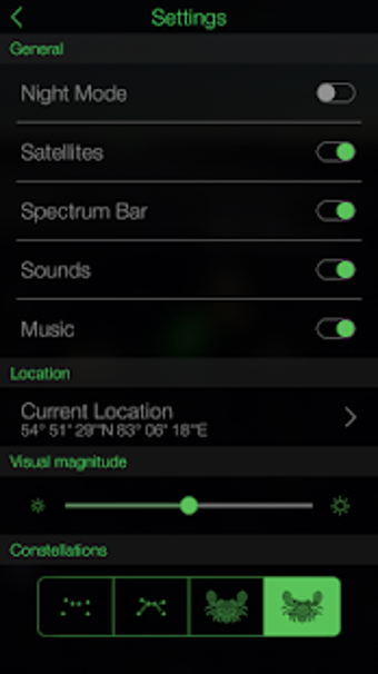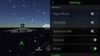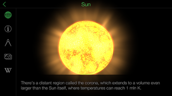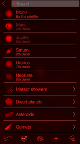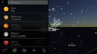 Applikationen innehåller också en avdelning för objekt i djup rymden, som låter dig ta reda på mer om stjärnorna, planeterna och stjärnbilderna i universum.